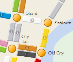 our version has a network of transit stops connected by SEPTA transit lines —