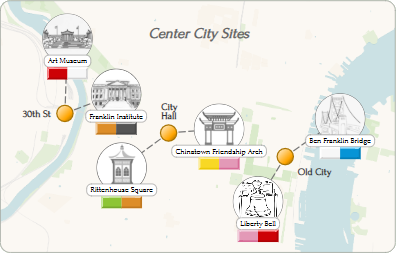 Each is a real place in Philadelphia (hover overtap any site in the online board for more info),